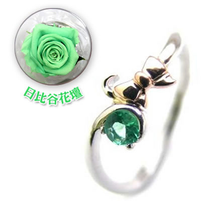 誕生石色バラ付ジュエリー今ならポイント最大5倍!(12月21日 13:59まで )◆スィートテンプラチナ エメラルド・ダイヤモンドリング(日比谷花壇誕生色バラ付)【SUEHIRO】