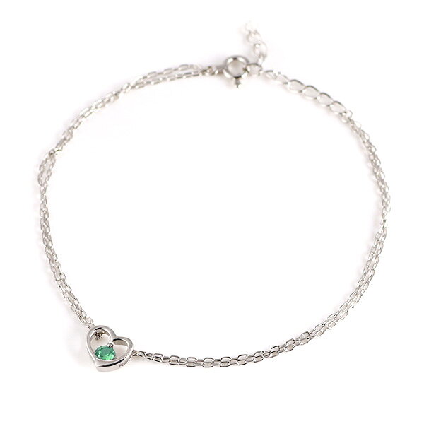 ハートモチーフに幸せの誕生石を入れた可愛いテイストのピュアなデザインブレスレット個性豊なおしゃれやプレゼントに最適。5月の誕生石(エメラルド)送料無料 保証書付。K18WG エメラルド長さ 約 18cm(アジャスター部分 3cm) トップ部分 タテ 約 7mm×ヨコ 約 7mmお好きな誕生石をクリックしてください。1月ガーネット2月アメジスト3月アクアマリン4月ダイヤモンド5月エメラルド6月ムーンストーン 7月ルビー8月ペリドット9月サファイヤ10月トルマリン11月トパーズ12月タンザナイト ブレスレットのトップページへ