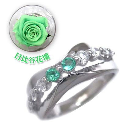 誕生石色バラ付ジュエリー今ならポイント最大5倍!(12月21日 13:59まで )◆( 5月誕生石 ) スィートテン K18ホワイトゴールド エメラルド・ダイヤモンドリング★送料無料(日比谷花壇誕生色