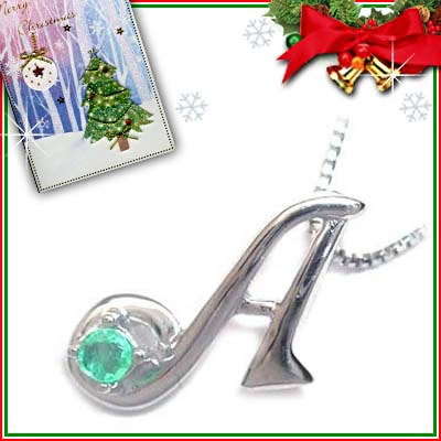 クリスマス限定商品今ならポイント最大5倍!(12月21日 13:59まで )◆クリスマス限定Xmasカード付「A」イニシャルモチーフ( 5月誕生石 )K10WG エメラルドペンダントネックレスCanC