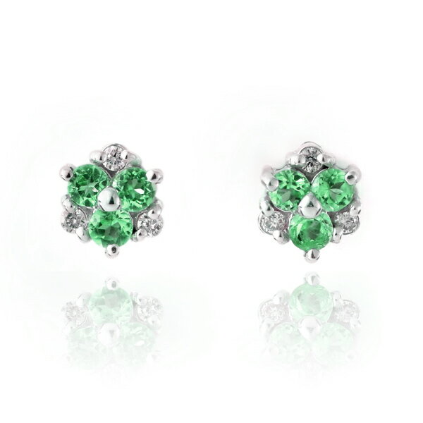 華やかなお花モチーフのおしゃれなデザイン。プレゼントに最適。5月の誕生石(エメラルド)送料無料 保証書付。K18WG エメラルド ダイヤモンド 0.02ct×2大きさ タテ約 4mm×ヨコ約 4mmお好きな誕生石をクリックしてください。1月ガーネット2月アメジスト3月アクアマリン4月ダイヤモンド5月エメラルド6月ムーンストーン7月ルビー8月ペリドット9月サファイヤ10月トルマリン11月トパーズ12月タンザナイト