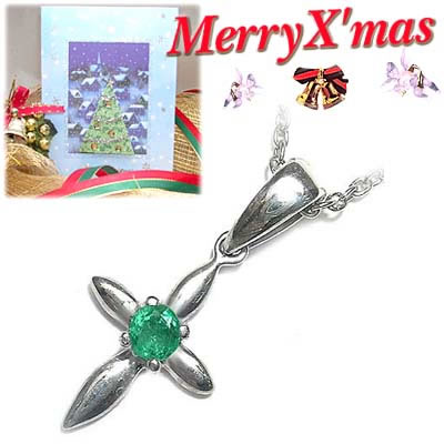 クリスマス限定商品今ならポイント最大5倍!(12月21日 13:59まで )◆クリスマス限定Xmasカード付( 5月誕生石 ) エメラルドペンダントネックレス(クロスモチーフ)★送料無料【SUEHIR