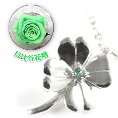 誕生石色バラ付ジュエリー今ならポイント最大5倍!(12月21日 13:59まで )◆( 5月誕生石 ) シルバー エメラルドペンダントネックレス(クローバーモチーフ) (日比谷花壇誕生色バラ付)★送料