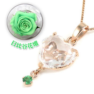 誕生石色バラ付ジュエリー今ならポイント最大5倍!(12月21日 13:59まで )◆( 5月誕生石 ) K10ピンクゴールド エメラルドペンダントネックレス(ハート・リボンモチーフ)(日比谷花壇誕生色