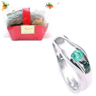 スイーツ付ジュエリー今ならポイント最大5倍!(12月21日 13:59まで )◆( スイーツ付 ) K18ピンクゴールド エメラルドリング★送料無料(ゴディバ、クッキー、日比谷花壇バラ付)【SUEHI