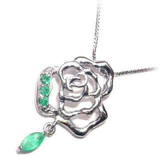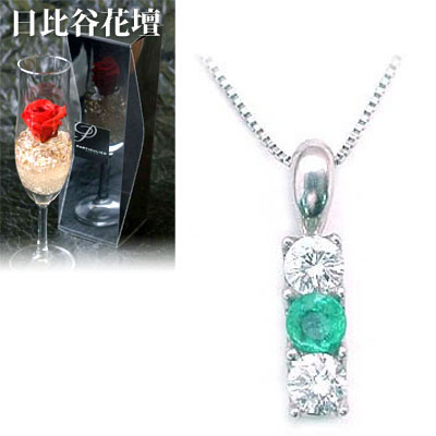 フラワー付ジュエリー今ならポイント最大5倍!(12月21日 13:59まで )◆( 5月誕生石 ) Pt エメラルドネックレス★送料無料(日比谷花壇バラ付)【SUEHIRO】