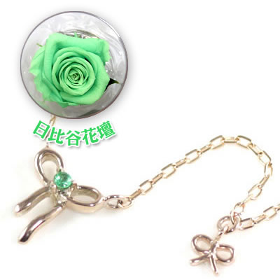誕生石色バラ付ジュエリー今ならポイント最大5倍!(12月21日 13:59まで )◆( 5月誕生石 ) K10ピンクゴールド エメラルドペンダントネックレス(リボンモチーフ)(日比谷花壇誕生色バラ付)