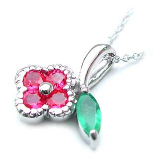 胸元を飾るプチペンダント今ならポイント最大5倍!(12月21日 13:59まで )◆( K18WG )ルビー・エメラルドペンダントネックレス【SUEHIRO】