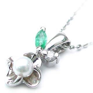 胸元を飾るプチペンダント今ならポイント最大5倍!(12月21日 13:59まで )◆( K18WG )パール・エメラルドペンダントネックレス【SUEHIRO】