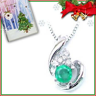 クリスマス限定商品今ならポイント最大5倍!(12月21日 13:59まで )◆クリスマス限定Xmasカード付( 5月誕生石 ) K18ホワイトゴールド エメラルドペンダントネックレス【SUEHIRO】