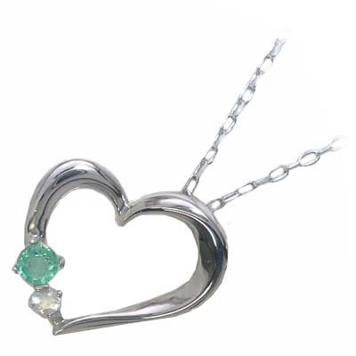 胸元を飾るハートバースディペンダント今ならポイント最大5倍!(12月21日 13:59まで )◆( 5月誕生石 ) K10ホワイトゴールド エメラルドペンダントネックレス(ハートモチーフ)★送料無料【