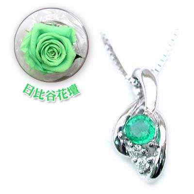 誕生石色バラ付ジュエリー今ならポイント最大5倍!(12月21日 13:59まで )◆( 5月誕生石 ) K10ホワイトゴールド エメラルドペンダントネックレス(ハートモチーフ)★送料無料(日比谷花壇誕