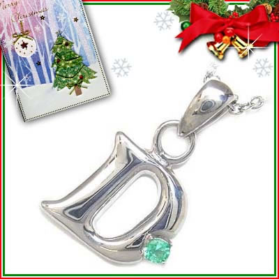 クリスマス限定商品今ならポイント最大5倍!(12月21日 13:59まで )◆クリスマス限定Xmasカード付「D」イニシャルモチーフ( 5月誕生石 ) エメラルドペンダントネックレスCanCam掲載【