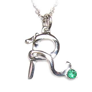 これが初めてのイニシャルペンダント With マイラッキーストーン。人気のイニシャルペンダントに貴女を守ってくれる誕生石が付いたからいつも身につけていたい。大切な人へのプレゼントに、二人でペアに幸せを呼ぶ、ベストペンダント。プレゼントに最適。イニシャル「R」 イニシャルモチーフ5月の誕生石(エメラルド)送料無料 保証書付。ネックレス 約 40cm シルバー エメラルドトップ部分の大きさ タテ約 15mm×ヨコ約 15mmお好きな誕生石をクリックしてください。1月ガーネット2月アメジスト3月アクアマリン4月ダイヤモンド5月エメラルド6月ムーンストーン 7月ルビー8月ペリドット9月サファイヤ10月